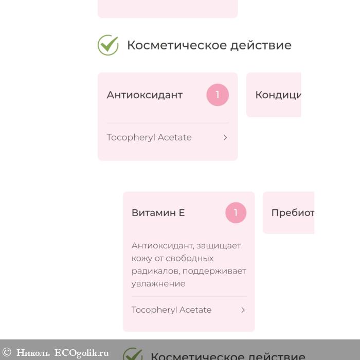 - Tocopheryl Acetate (Витамин Е) - антиоксидант, питает, смягчает, обладает антиоксидантным, противовоспалительным действиями.