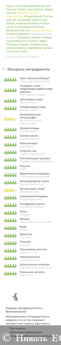 Состав классный. В нём нет искуственных красителей, консервантов, синтетических отдушек, ароматизаторов, минерального масла, силиконов, плёнкообразователей.