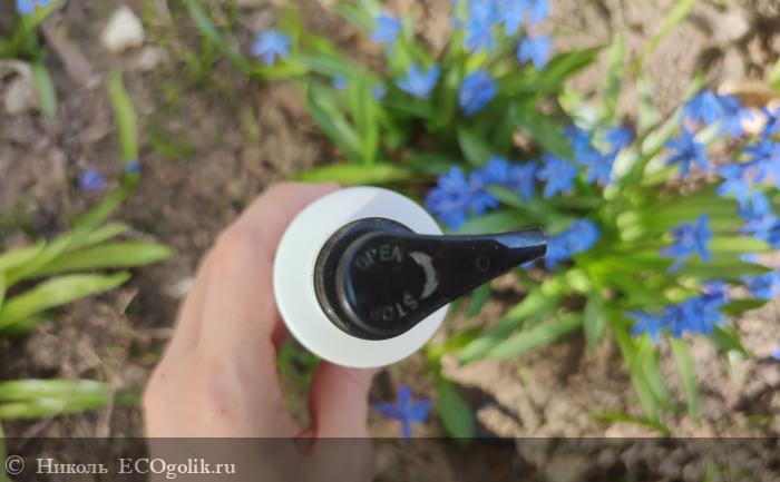 Дозатор имеет поворотный механизм, который позволяет при необходимости прочно и надёжно закрыть дозатор.