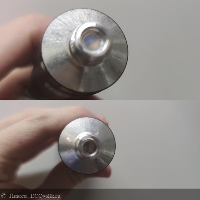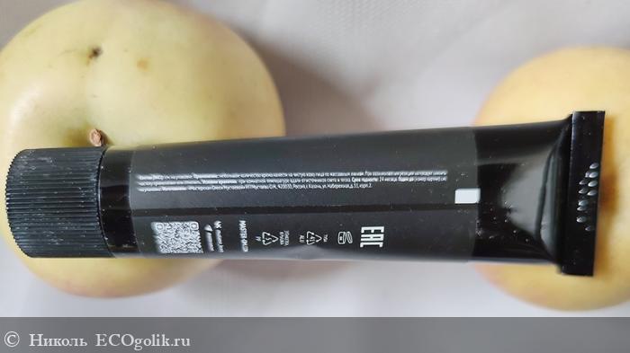 Значки переработки тубы (сделана из алюминия), этикетки и крышки (они сделаны из полипропилена), а так же значок открытой баночки, который гласит, что после вскрытия срок годности сокращается до 4 месяцев, указаны на влагоустойчивой наклейке, приклеенной на тюбик.