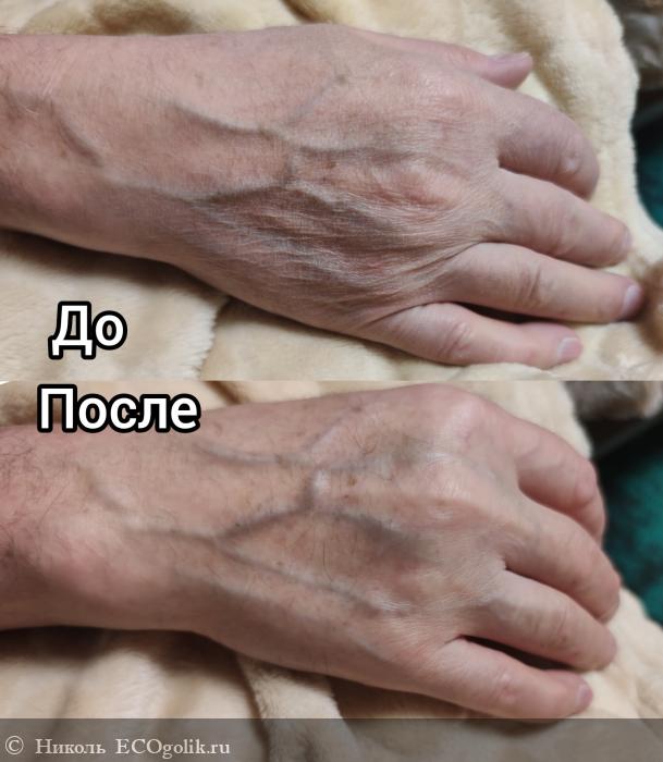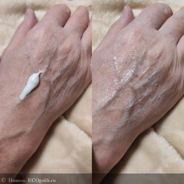Крем хоть и предназначен для лица, но на сухие участки тела я его тоже наношу, чаще на руки. Здесь покажу нанесение и эффект на старой, мужской коже.