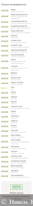 В составе много увлажняющих и смягчающих, регенерирующих, антиоксидантных компонентов и ингредиентов от старения кожи.