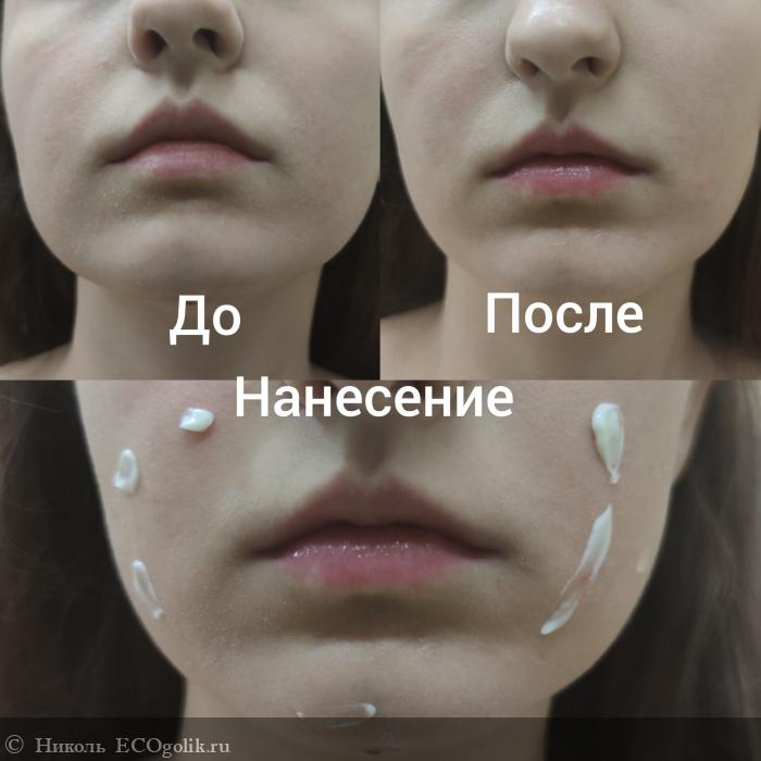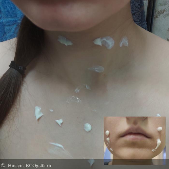 Крем легко распределяется по коже и быстро впитывается в неё. Не оставляет липкости, ощущения тяжести на коже, жирного блеска, масляной плёнки. Кремушек не ощущается на коже.