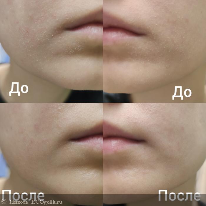 - При постоянном использовании уменьшается видимость носогубной складки, пигментных пятен, уменьшается провисание кожи и разглаживаются морщинки.