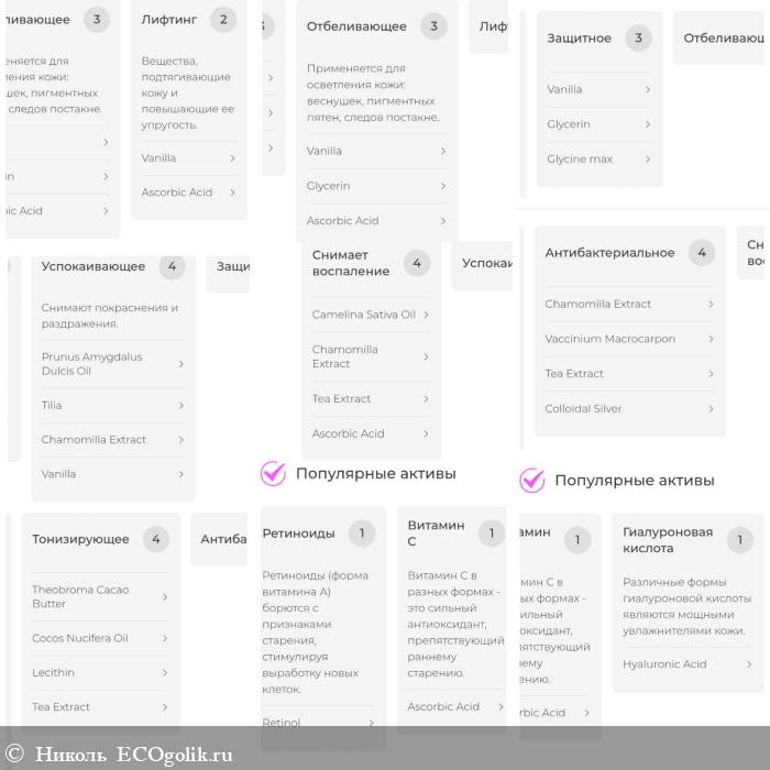 - Витамин С - антиоксидант, повышает упругость, облдает противовоспалительным, регенерирующим действиями.
