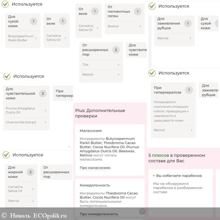 Состав прекрасный написан по INCL. В нём много увлажняющих, регенерирующих, антиоксидантных, смягчающих, питательных компонентов. Но есть и активы, которые могут быть потенциальными комедогенами, и те ингредиенты, которые могут питать малассезию.