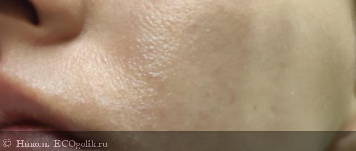 На коже после нанесения остаётся жирный блеск. Ощущения тяжести имеется, чувствуется, что на кожу лица нанесли суфле.. Мои волосики, если их не заплести, липнут к коже лица.
