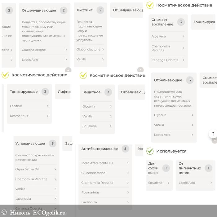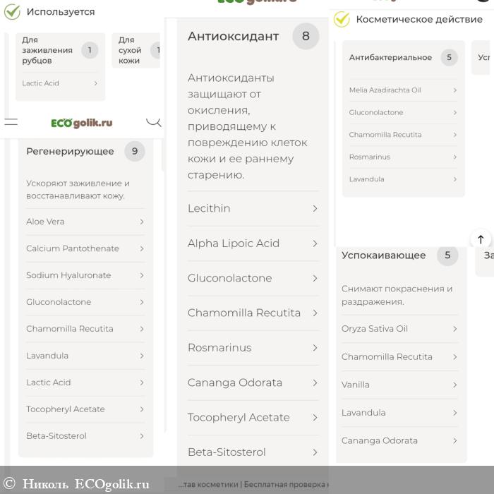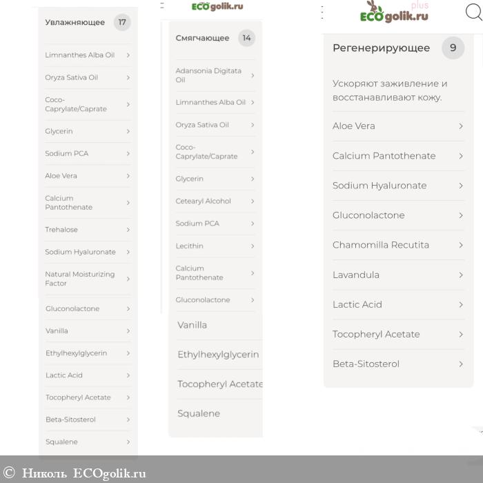 - Ethylhexylglycerin (этилгексилглицерин) - антиоксидант. Обладает смягчающим действием.