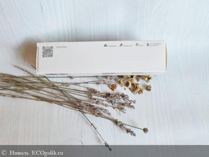 На коробочке имеется QR-код, указан сайт бренда, и написано следующее: