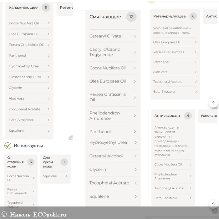 Подписка PLUS позволила провести мне расширенный анализ состава и выявила следующее. Составчик направлен на питание, увлажнение, заживление, успокоение, смягчение, восстановление кожи.