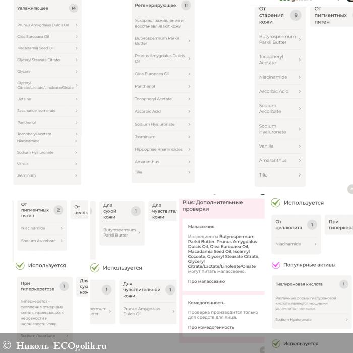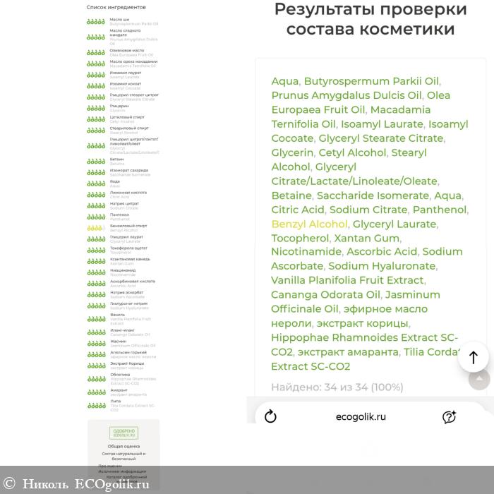 Состав шикарный. Он богат на полезные компоненты, в нём много увлажняющих, регенерирующих, смягчающих, антиоксидантных, питающих кожу компонентов. В нём нет синтетических отдушек, искуственных красителей и консервантов, минерального масла.