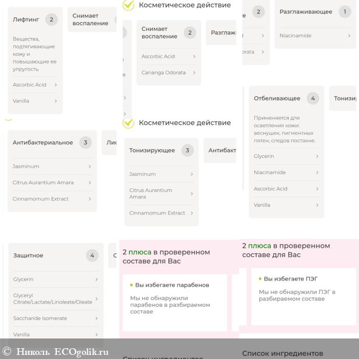 - Ascorbic Acid (аскорбиновая кислота) - антиоксидант, обладает противовоспалительным, регенерирующим действиями, повышает упругость кожи.