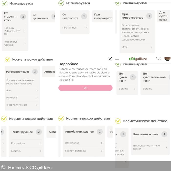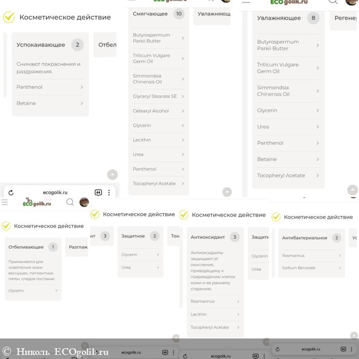 Прикреплю разбор компонентов по косметическому действию: