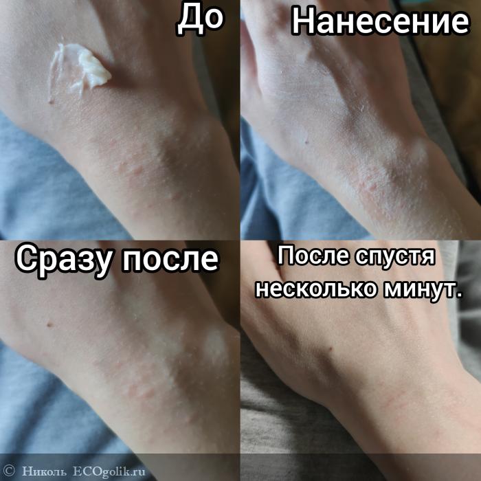 Крем плотный, но распределяется легко, не растягивая при этом кожу.
