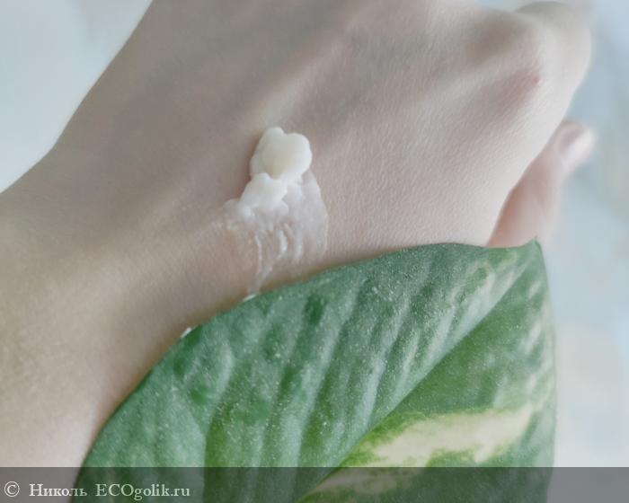 Сам крем молочного цвета. Напоминает больше баттер для тела, маслянистость ощущается.