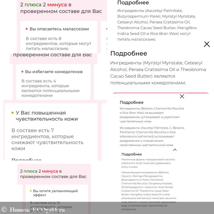 Расширенная проверка состава показала мне, что есть компоненты, питающие мелассезию, а так же, что есть компоненты, являющихся потенциальные комедогенами. Следовательно, 3 минус. Но так же эта проверочка выделила и плюсы для меня.