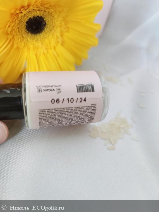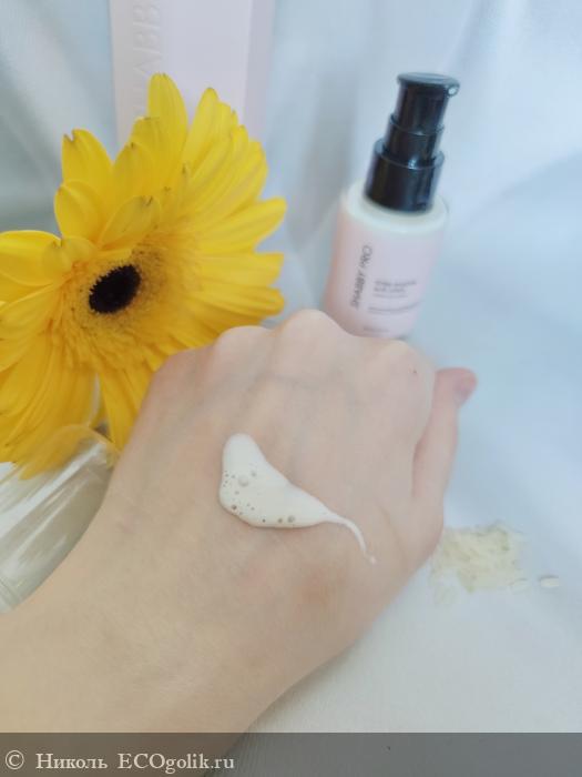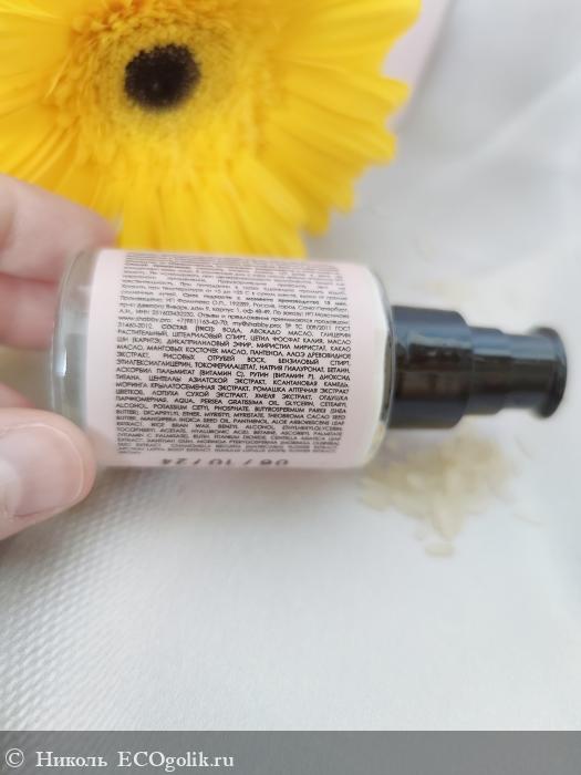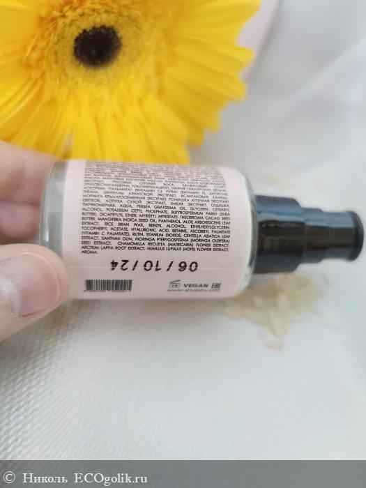 На самом флаконе написаны ингредиенты, входящие в состав этого уходового продукта: воск рисовых отрубей, руин, витамин С, экстракт центеллы, моринги.