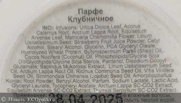 Состав потрясающий, настоящая кладезь полезностей для шевелюры. Он написан по INCL и переведён на русский язык. В составе нет силиконов, минерального масла парабенов, сульфатов, искуственных красителей и консервантов, синтетических ароматизаторов. Составчик богат на активы, все они в хорошей концентрации.