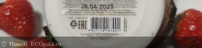 Вся необходимая информация про эту маску указана на влагоустойчивой наклейке, приклеенной на банку. Текст написан чёрным шрифтом, он легко читаем. Информация грамотно структурирована и разделена на пункты.