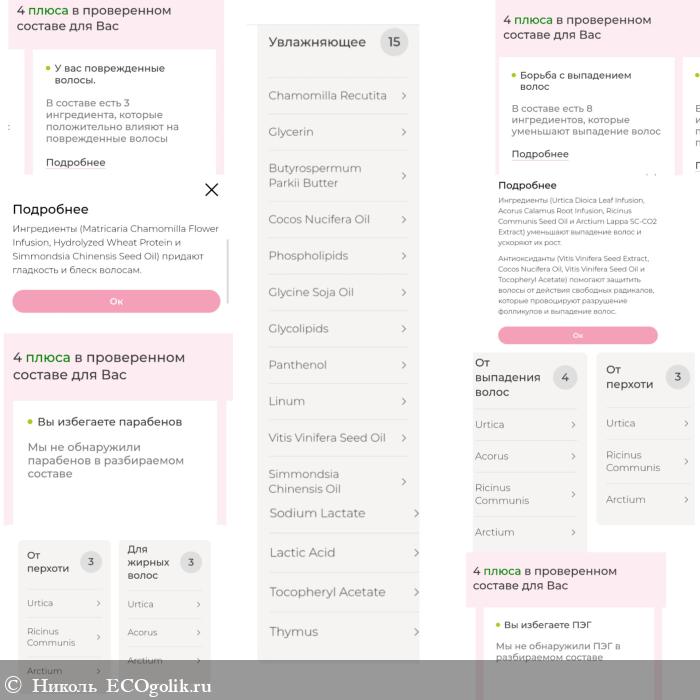 Состав шикарный, богат на полезные компоненты. В нём нет: силиконов, минерального масла, искуственных красителей, консервантов, синтетических ароматизаторов. Масочка обладает комплексным эффектом, работает в 3 направлениях: увлажнение, питание, липидное восстановление. Ещё маска придаёт блеск, гладкость, упругость, эластичность, шелковистость, плотность волосам, делая их более послушными.