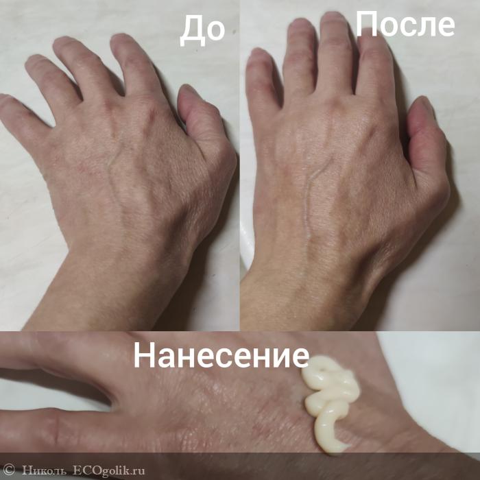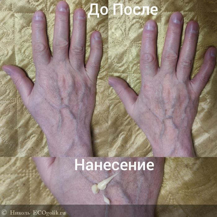 - Отлично питает. На руке моего папы покажу эффект. Может не сильна разница видна визуальная, но тактильно ощутима. Кожа стала нежной, более ровной, гладкой, напитанной, мягкой.