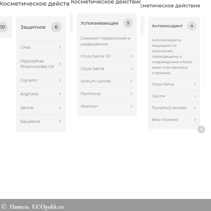 Написан результат, который может дать крем. Спойлер: этот результат выполняется. Сказано несколько слов про консерванты. Те, что добавлены в его состав, они разрешены по стандарту cosmos для производства органической и натуральной косметики.