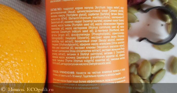 Аромат у маски приятный. Я чувствую ноты облепихи чётко, потом нотки апельсина, в шлейфе ощущаются ноты жасмина.