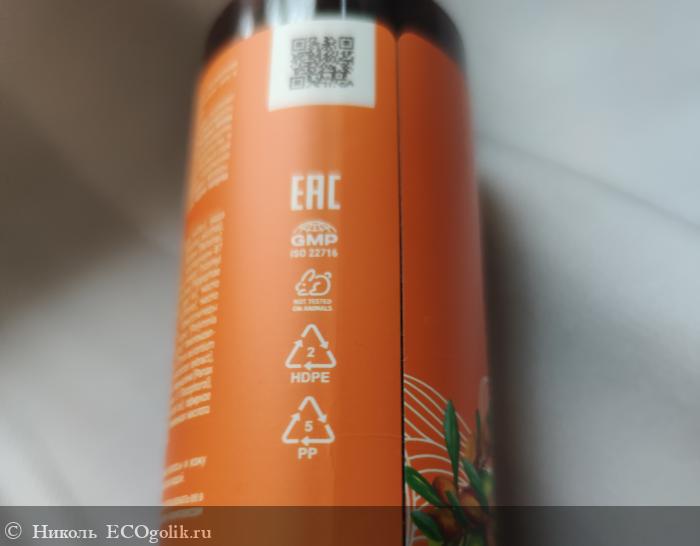 Сбоку флакона есть значки переработки, OR-код, штрих-код. Косметика бренда не тестируется на животных и имеет сертификат GMP ISO 22716.