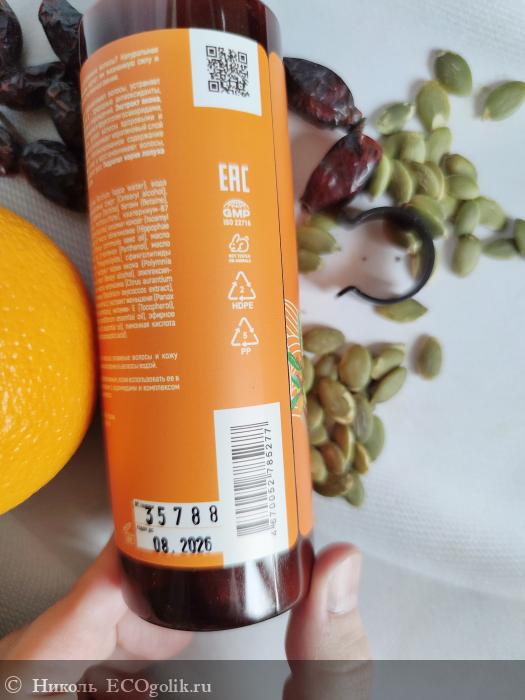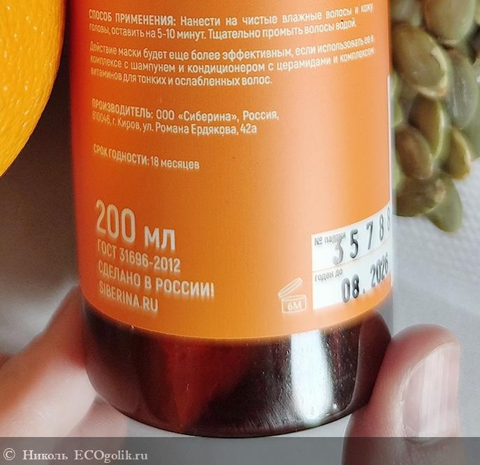 На наклейке указан срок годности, (есть значок, который гласит, что после вскрытия срок годности сокращается до 6 месяцев), номер партии, информация про производителя, объём флакона, официальный сайт, ГОСТ и способ применения. Использовать эту маску просто, её необходимо нанести на 5 - 10 минут и смыть. Производитель рекомендует использовать всю серию вместе и после масочки нанести ещё кондиционер.