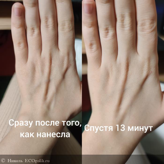 - Относительно быстро впитывается. Чуть блеск от масел видно, есть скользкость от масел, но после 13 минут он полностью исчезает.
