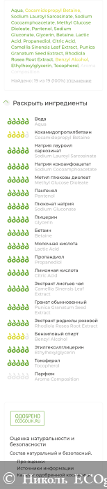 Состав одобрен этим сайтом. Этот гель для душа входит в каталог одобренной косметики ECOGOLIK.