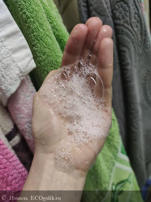 - Отлично пенится за счёт таких ПАВ, как: Сocamidopropyl betaine, Sodium Lauroyl Sarcosinat, Sodium Cocoamphoacetate.