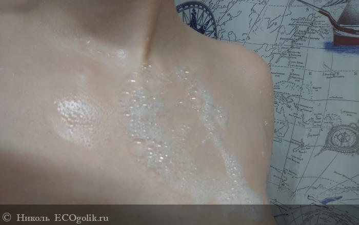 - Снижает агрессивное действие хлорированной, жёсткой воды на кожу. (У меня достаточно жёсткая вода, и если я не использую гель для душа, то моя кожа тела иногда может после душа быть сухой, а в холодное время года вообще ощущаться даже стянутость, когда как.)