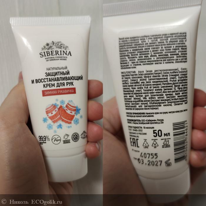 - Защитный восстанавливающий крем для рук зимняя рукавичка. Я не ношу перчатки, так что кремы зимой у меня расходуются быстрее. Знаю, что кожу нужно защищать, поэтому взяла этот кремушек.