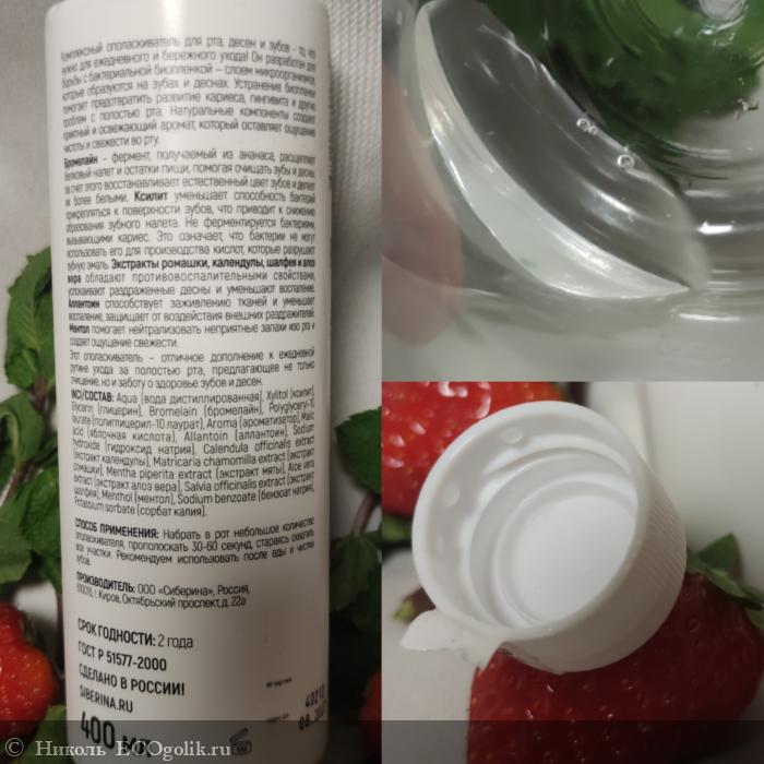 - Ополаскиватель для полости рта освежающий со вкусом клубники и ментола.