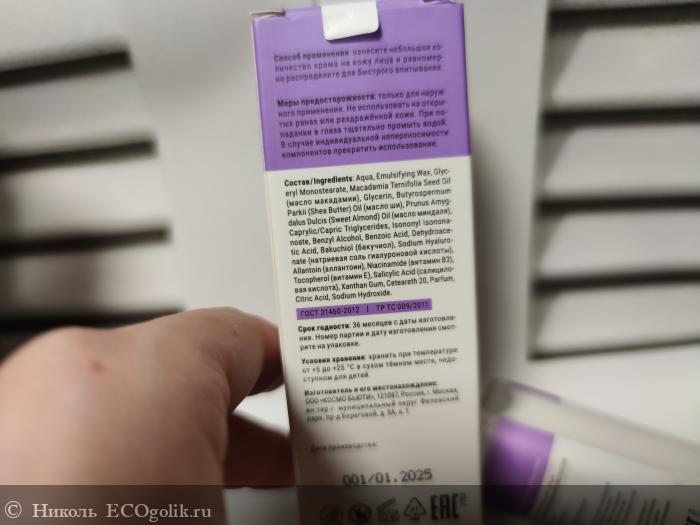 - Крем для лица от Lavant с бакучиолом. Тут состав не идеальный на 100%, но хороший. Есть компонент ближе к концу состава, из-за которого состав не получает оценку одобрен, но составчик безопасный. По работоспособности он отличный.