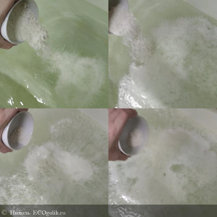 Вода в ванне, после растворения этой смеси в ней, становится слегка молочного оттенка.