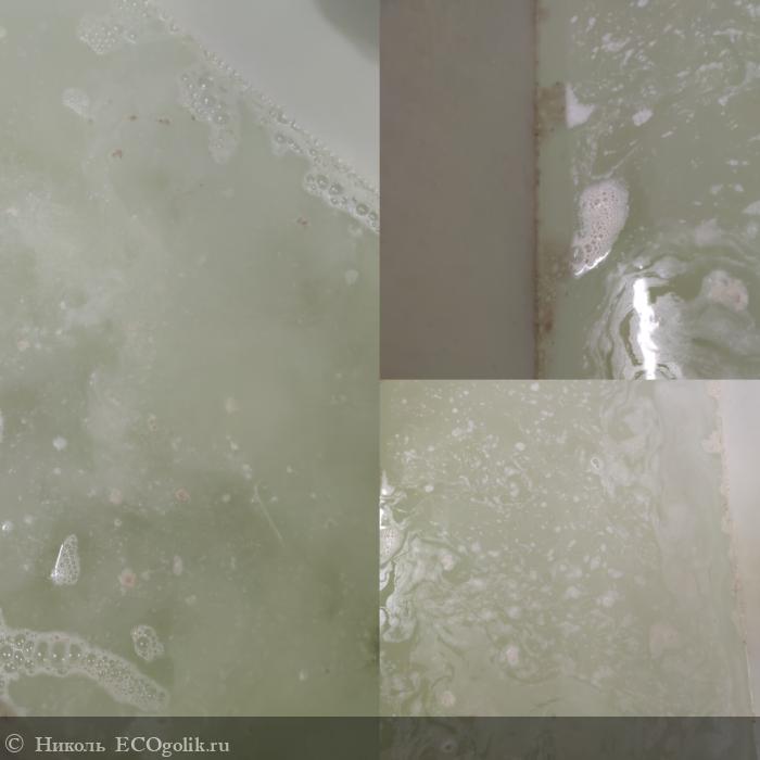 Маслянистости на поверхности ванны после смывания водой не оставляет. На поверхности воды можно увидеть лёгкий "шиммер".