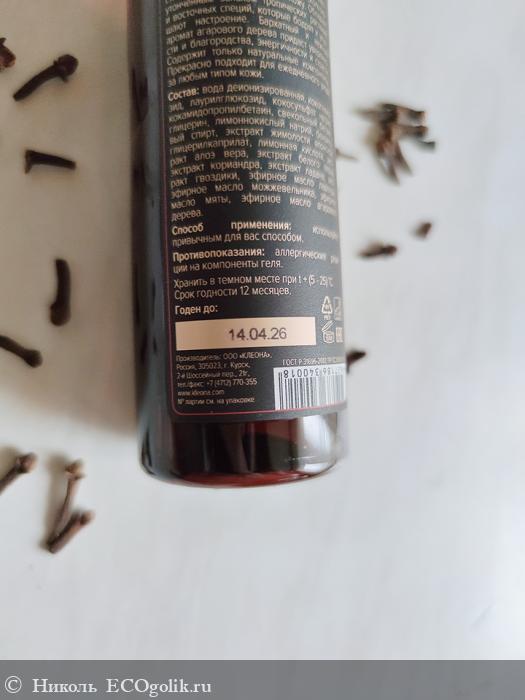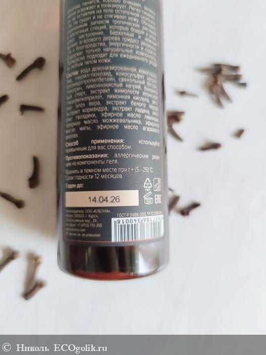 Аромат очень приятный. Он меня бодрит и улучшает мне настроение. Для меня - попадание в самое сердце. Он пряный, чувствуются нотки гвоздики, которые переплетаются с нотками можжевельника. В шлейфе ощущаются ноты перца, кориандра и слегка древесные нотки (эфирного масла агарового дерева). Это восторг. Пользоваться этим гелем сплошное удовольствие. Он подойдёт не только для мужчин/мальчишек, но и для девушек/женщин, они тоже будут довольны. Аромат держится несколько часов на теле.