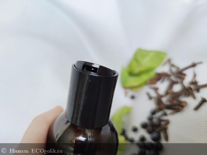 - Классно освежает и тонизирует за счёт экстрактов белого перца и кориандра, а так же за счёт эфирного масла можжевельника