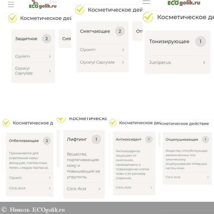 - Увлажняет кожу замечательно за счёт глицерина, свекольного бетаина, экстракта алоэ вера. После этого геля кожа не нуждается в нанесении крема.