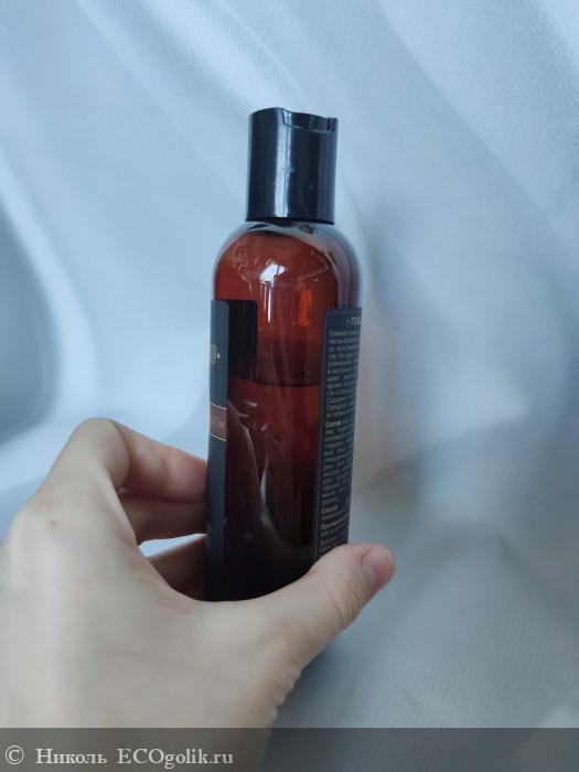 У этого уходового продукта консистенция средней густоты, она гелевая, янтарного оттенка.