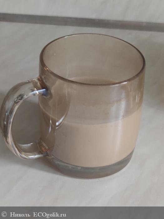 Напиток по цвету светло-коричневый, по консистенции жидкий, как миндальное молоко. Вкус и аромат миндаля ярко ощутим.