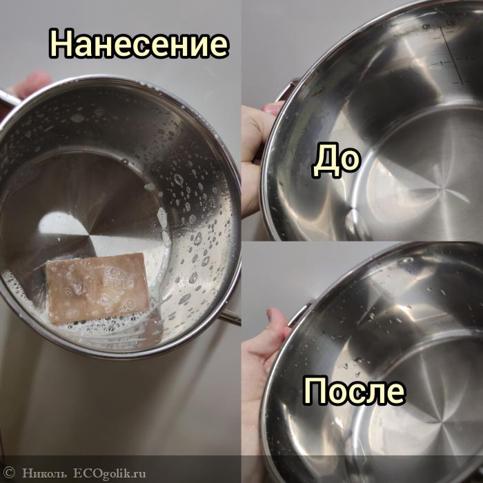 В кастрюле настаивался эстрагон, я делала тархун. Остались зелёные следы. Так мыло очистило в миг, без прикладывания усилий.