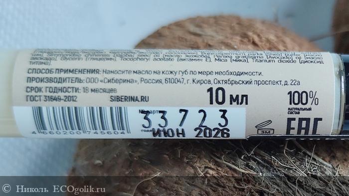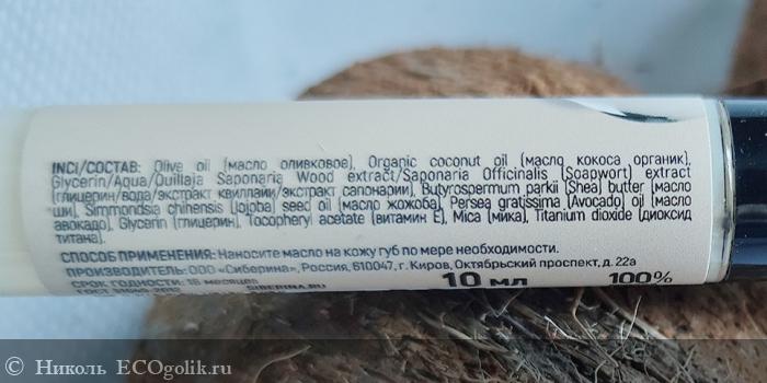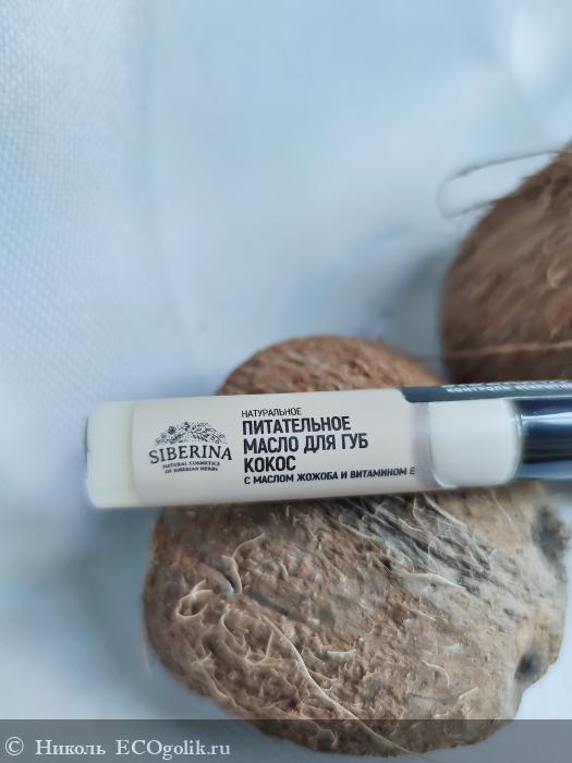 Николь: Натуральное питательное масло для губ "Кокос" с маслом жожоба и витамином Е от SIBERINA.