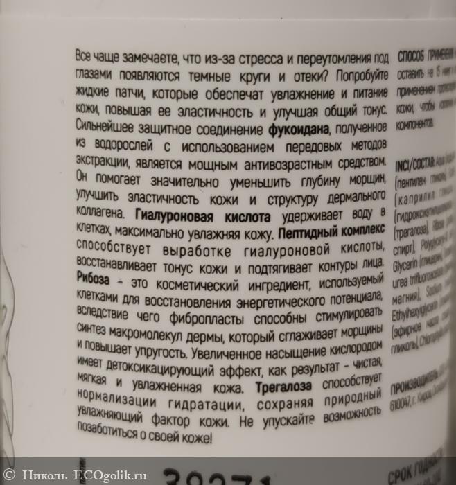 Николь: Натуральные жидкие патчи для кожи вокруг глаз с фукоиданом от SIBERINA. Эти патчи моё спасение. Результат отличный дают. Минус: нежелательный компонент в составе.