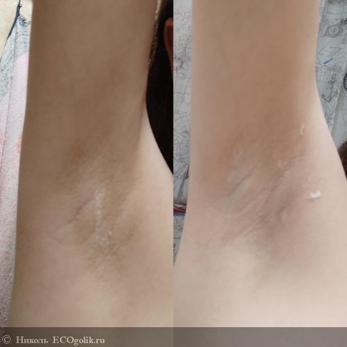 - Дезодорант не скатывается, не комкуется в подмышечных впадинах.