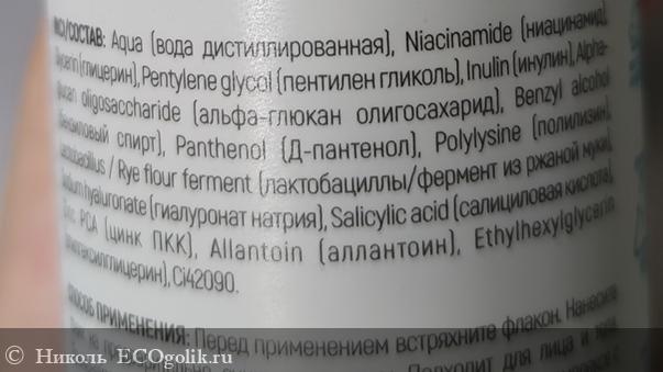 не нашёл в нём 2 компонента. Это Polylysine и Cl 42090. Polylysine - дендример лизина, который является инновационным компонентом против акне. Является экологичным компонентом.