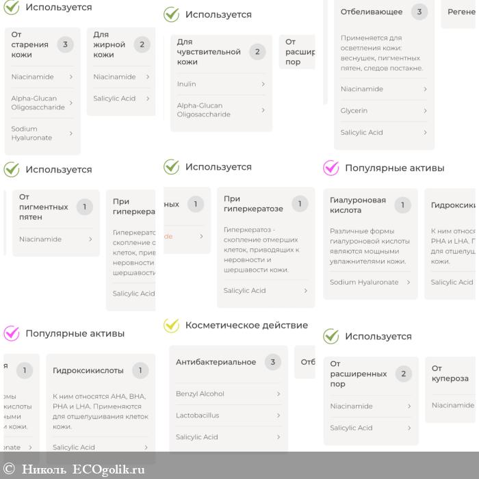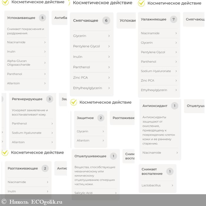 Прикреплю разбор компонентов по косметическому действию.