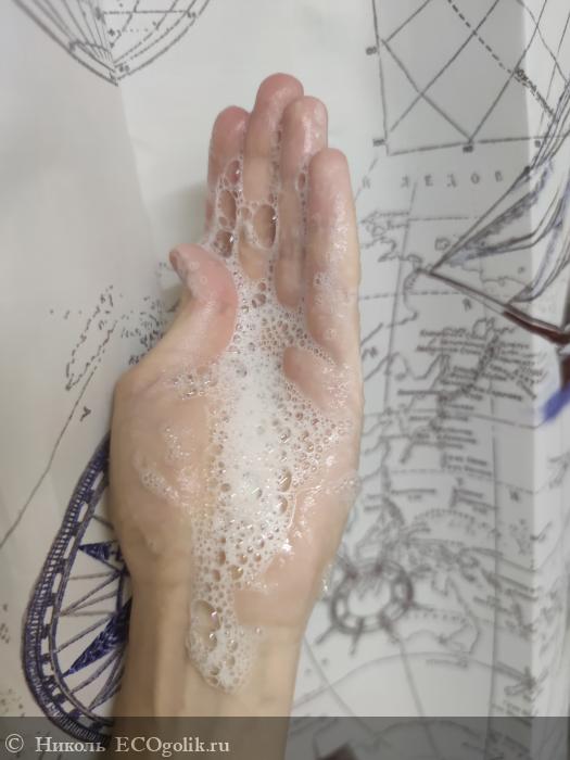 - Отлично пенится за счёт таких ПАВ, как: кокосульфат натрия, коко-глюкозид, кокамидопропилбетаин.